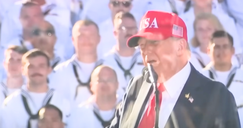As the speech drew to a close, Trump returned to his central message of loyalty to the Armed Forces. “The U.S. Navy always stands for America,” he said.